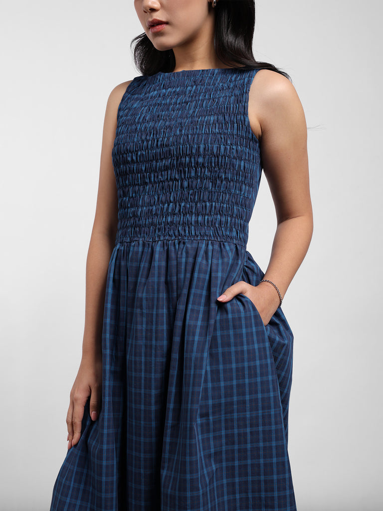 - Tampilan feminin yang effortless dengan siluet A-line dan kerah boat neck yang clean