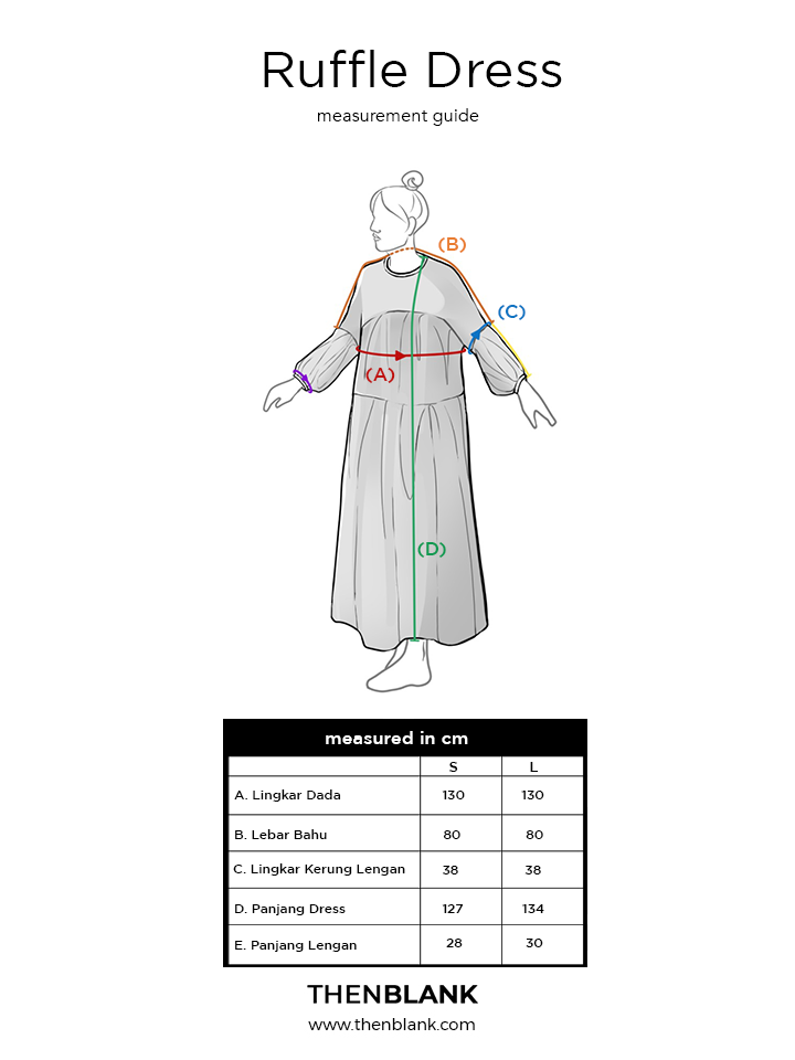 A dress for everybody is here for you all! Dress ini didesain untuk dapat dipakai oleh semua size. Hadir dalam ukuran S dan L yang hanya berbeda panjangnya saja. Terdapat aksen balloon sleeves dan layered ruffles sehingga menciptakan look yang manis. Selain itu, dress ini breastfeeding friendly dengan dilengkapi detail potongan pada bagian dada kanan dan kiri. Terdiri dari 4 warna yang dapat dikenakan couple atau bersamaan dengan Unisex Staple Shirt. Material: Info: Please note that actual color may slightly different from your display screen |
