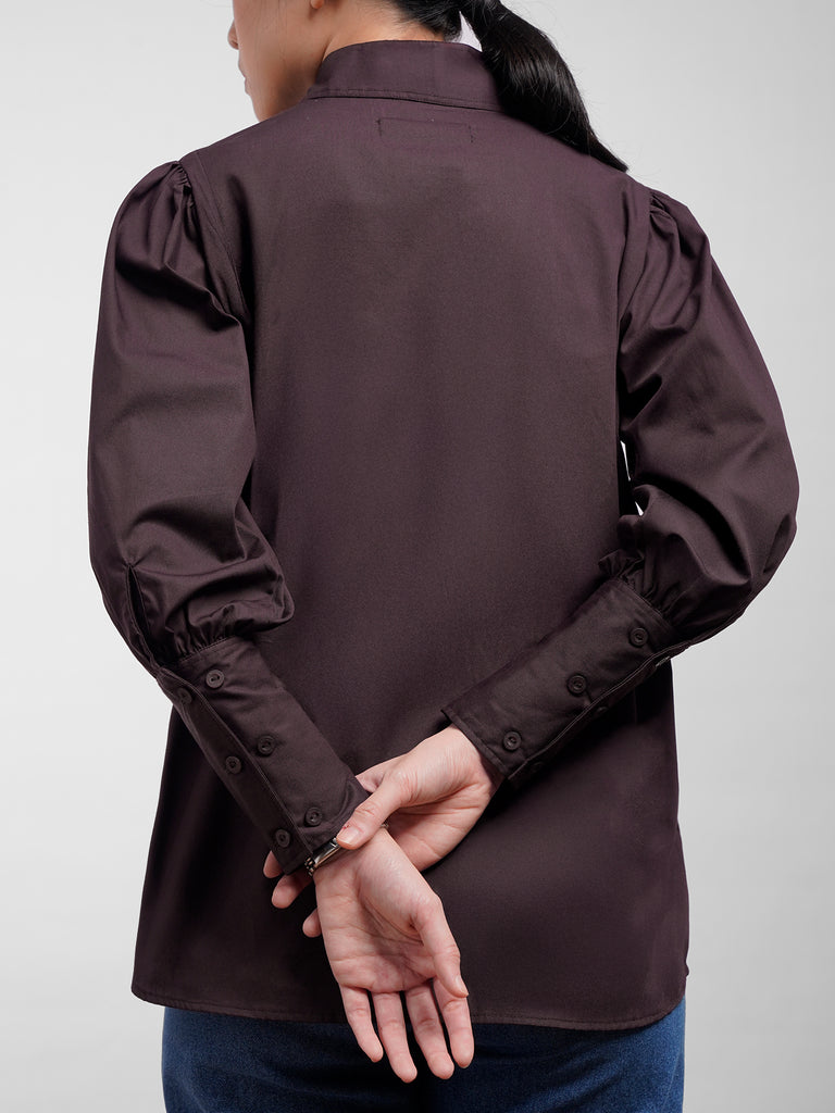 - Tampil anggun dan feminin dengan detail pita di bagian depan dan aksen puff di bagian lengan