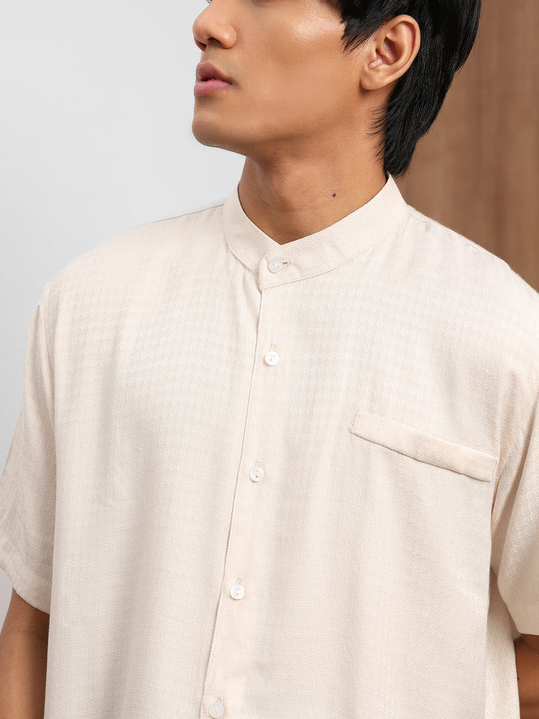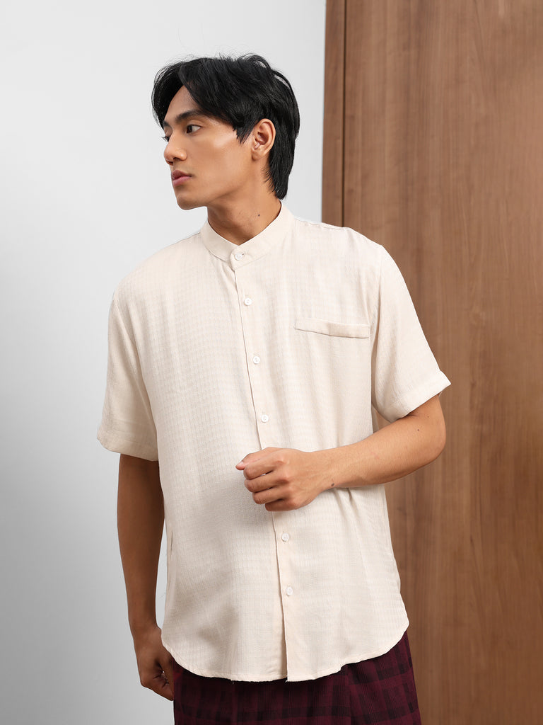 - Memberi kesan rapi dan modern dengan kerah mandarin dan bukaan di bagian depan