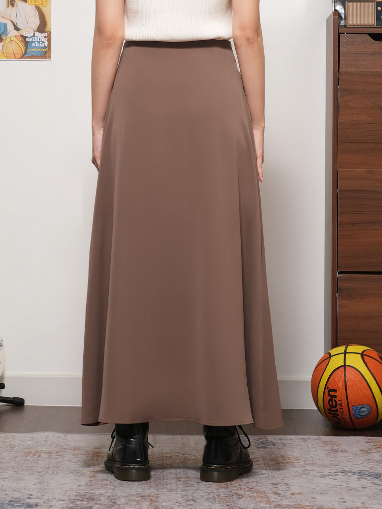 - Rok panjang dengan fitted waist dan flared bottom cutting