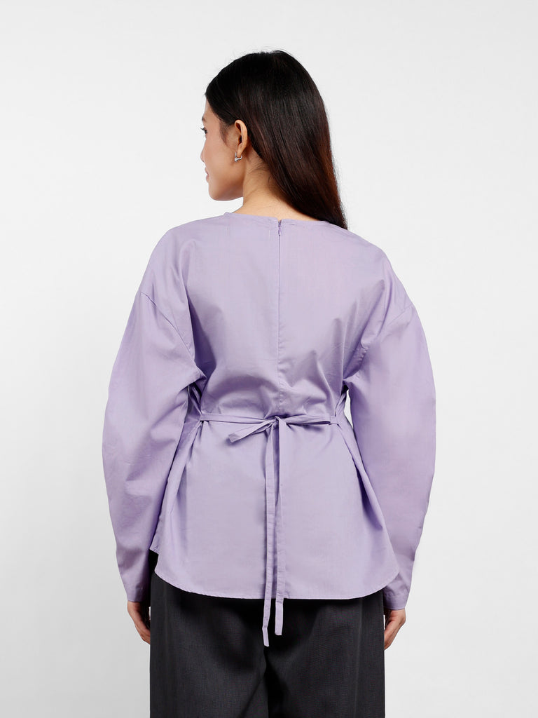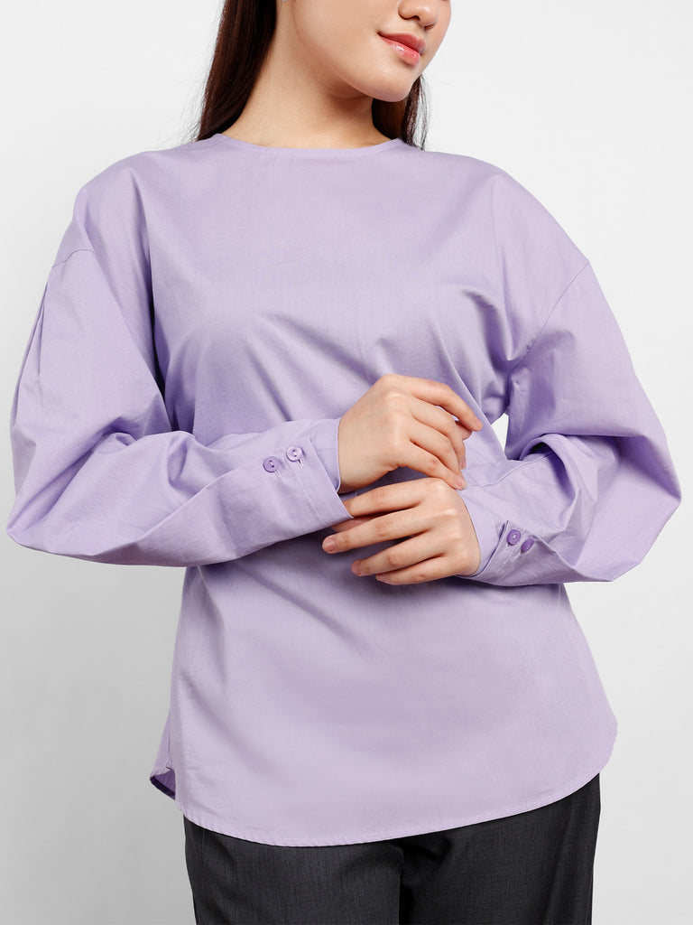 - Lengan semi balon bervolume dengan detail lipatan kancing memberi aksen gaya sekaligus ruang gerak bebas