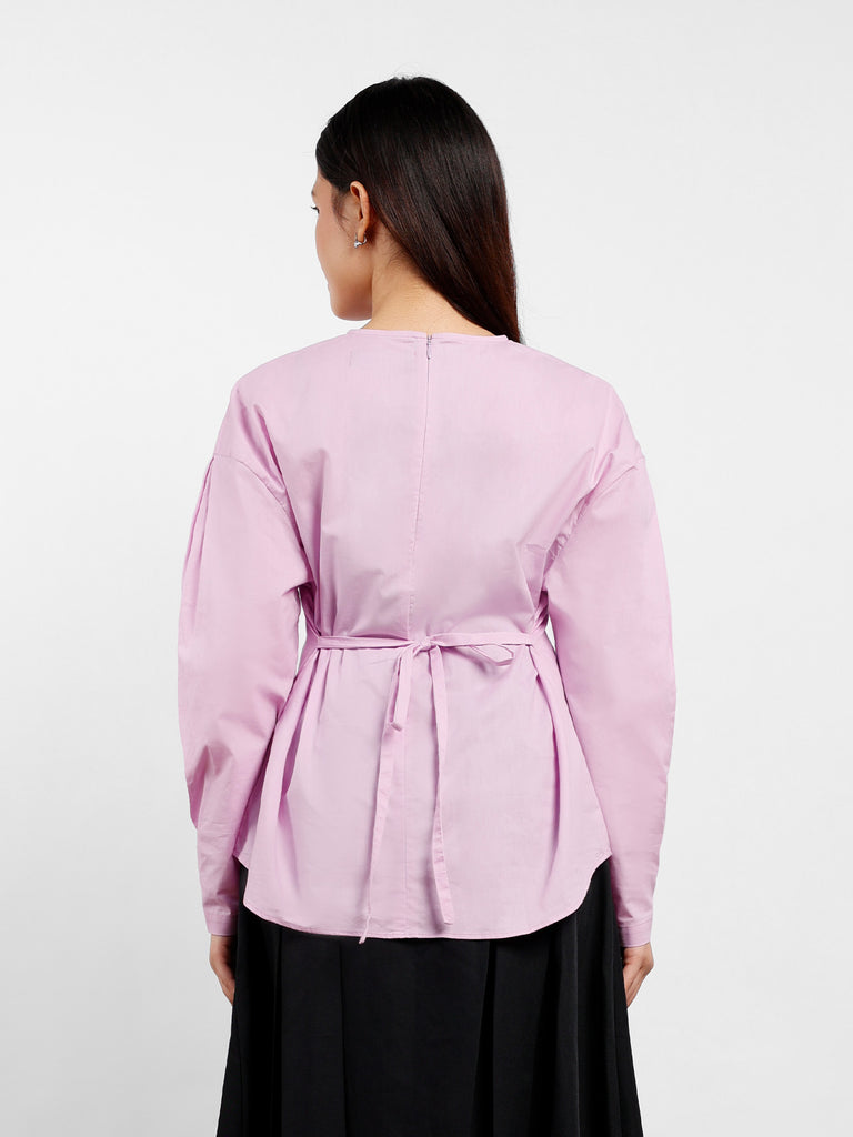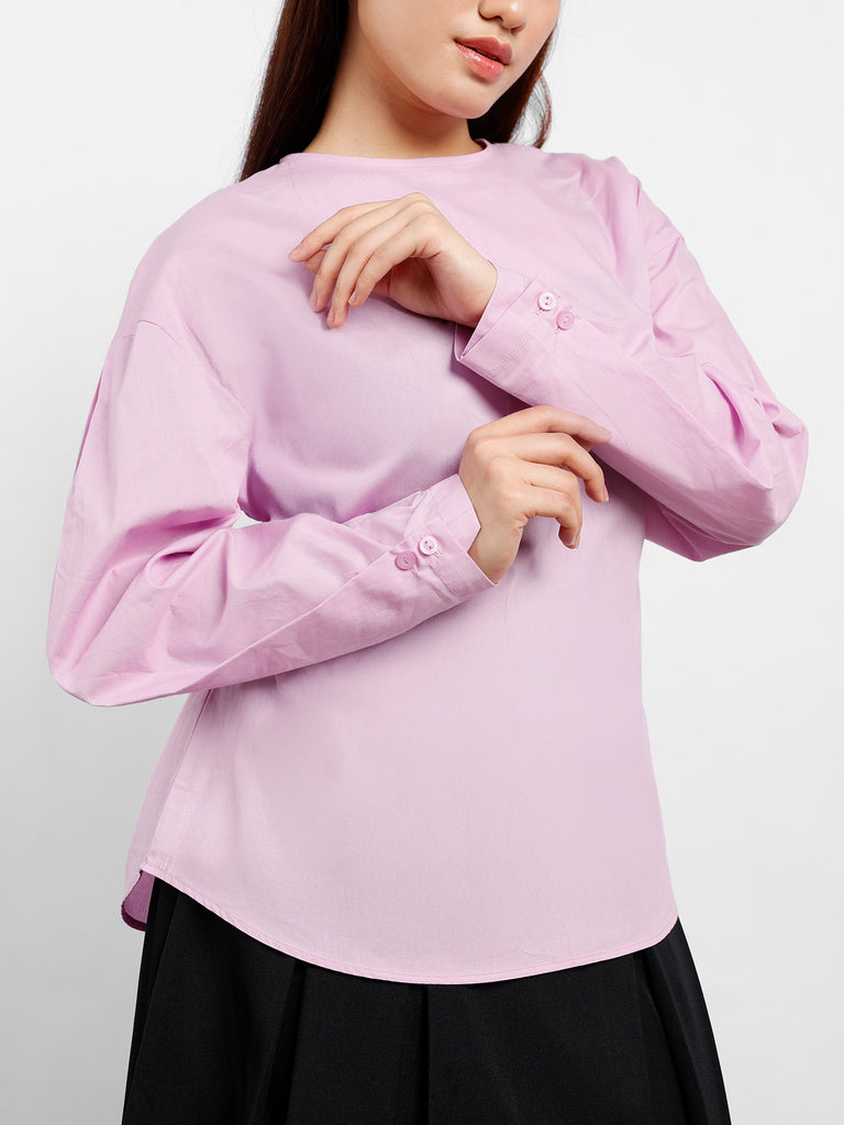 - Lengan semi balon bervolume dengan detail lipatan kancing memberi aksen gaya sekaligus ruang gerak bebas
