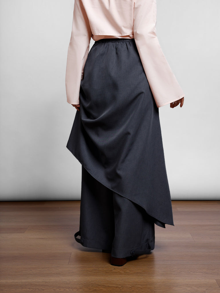 - Menciptakan siluet berdimensi dengan detail kerutan di sisi kiri.