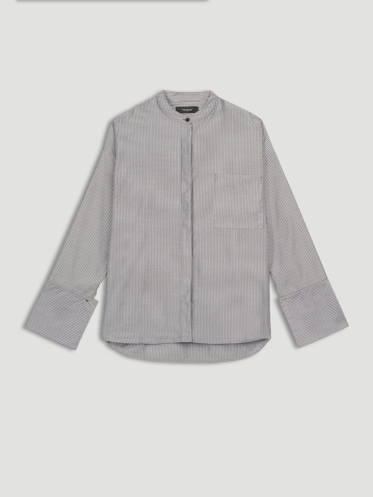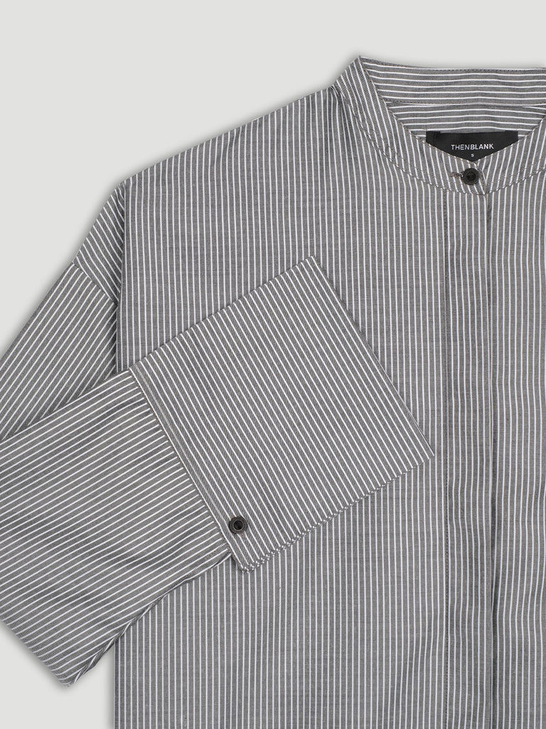 - Kemeja lengan panjang dan bermotif stripe vertikal