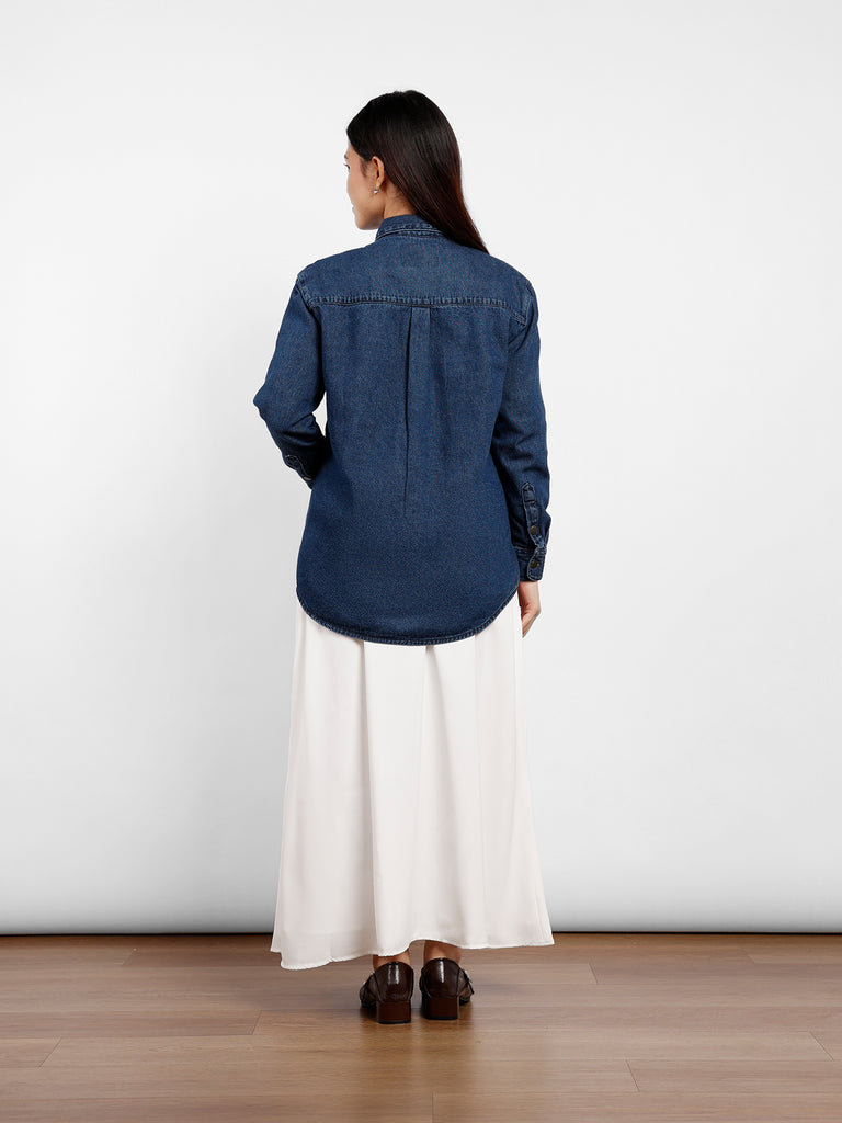 - Kemeja denim unisex timeless yang cocok untuk gaya casual dan semi-formal