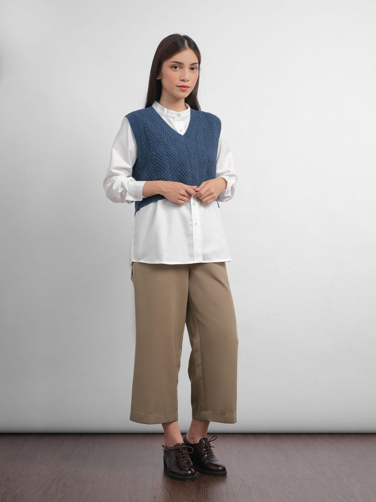 Tampil preppy dengan vest rajut timbul