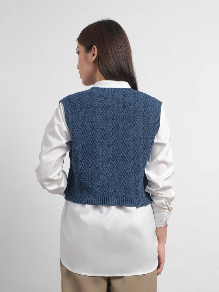 Chevron Knit Vest Denim