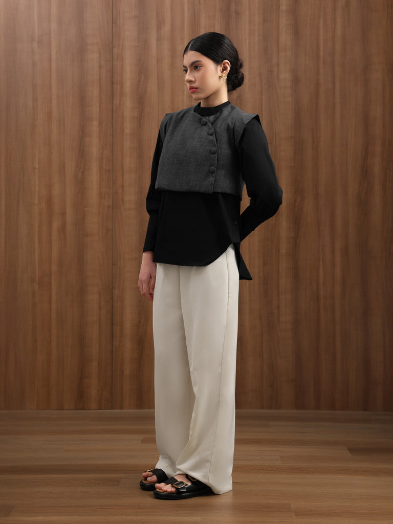 - Tamplil stylish dengan detail lengan wings yang memberikan siluet unik dan desain modern yang terinspirasi dari kebaya janggan khas Indonesia