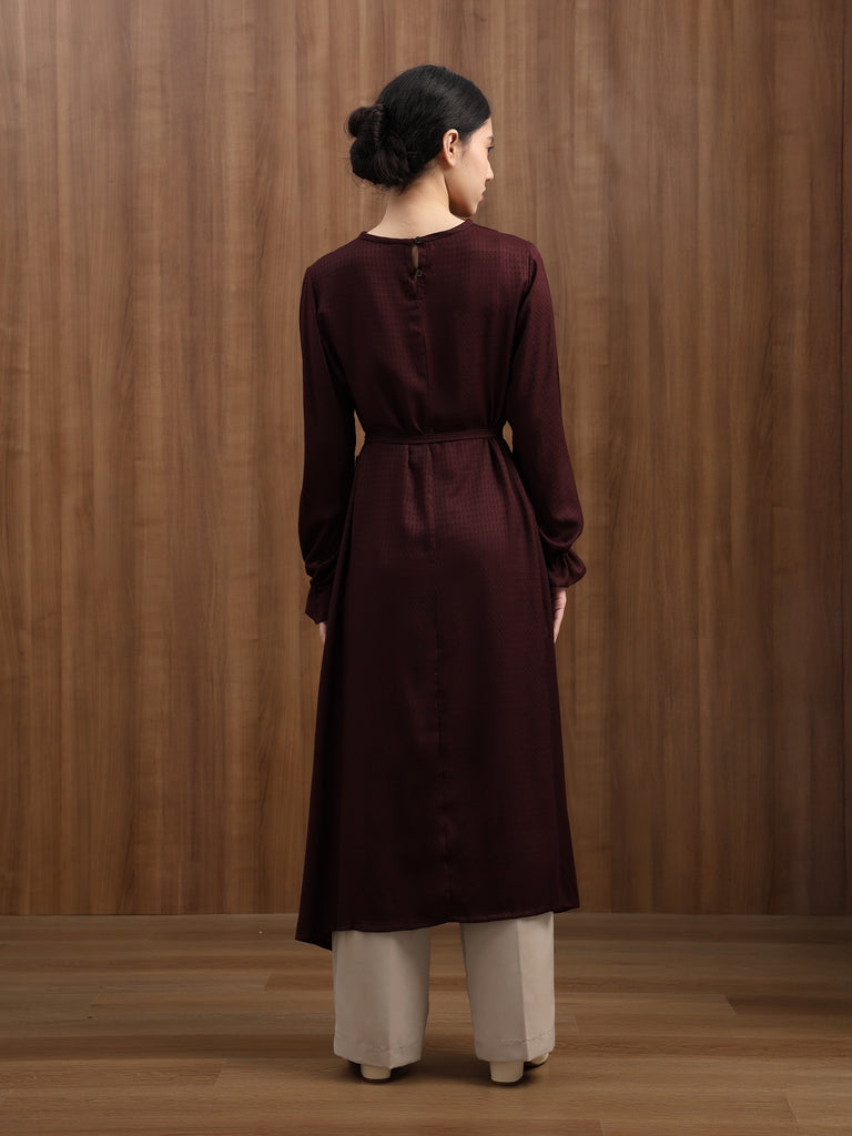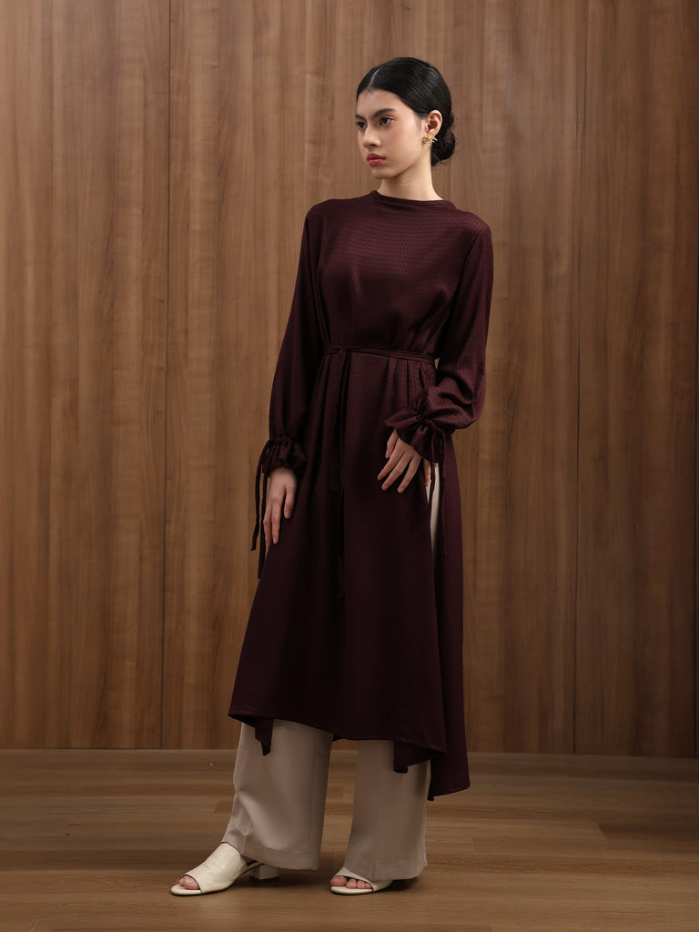 - Modest friendly dengan neckline boat yang tidak terlalu lebar dan panjang menutupi belakang